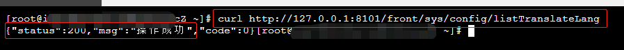 curl http://127.0.0.1:8101/front/sys/config/listTranslateLang返回: {"status":200,"msg":"操作成功","code":0} 即表示服务启动成功